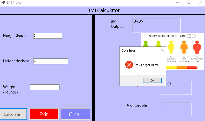 In this program it outputs the BMI of the user by taking info from