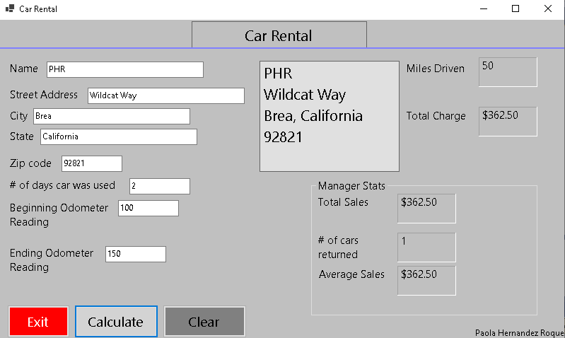 to rent the car. We learned how to code the program to do the math.