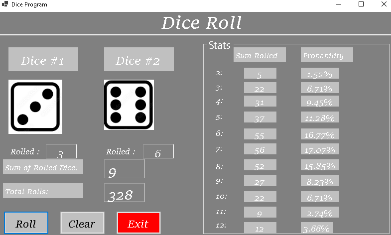 In this program, users roll a dice and the program calculates