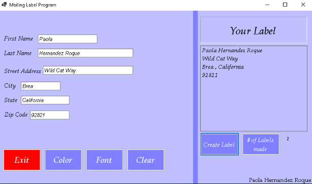 that a user has inputed and output it to create the mailing label.