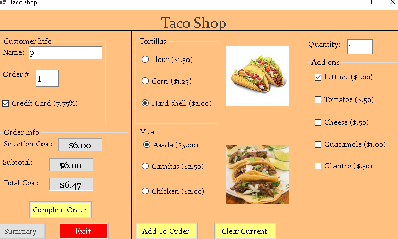 In this program, users order tacos and the program outputs the total cost