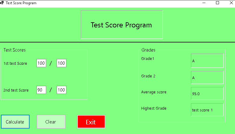 In this program, users input info about two tests, the program then calculates
